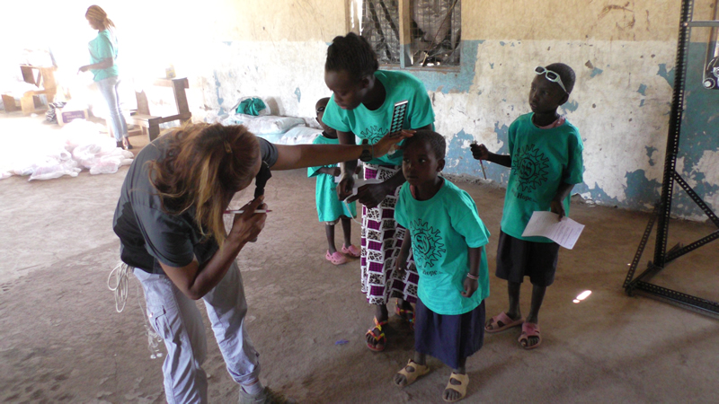 Here I am at one of our local communities, not far from our town of Kokwo Toto, where we have a clean water solar well that we put in in 2010, which is yielding 10,000 liters of water per day…music to our ears and life to our community…this is in Siria, where there is no water and little schooling available. Because there is no clean water in this area, the school teacher is scarcely found and school may take place maybe two days out of the week. These children travelled miles to come and see us here today. They waited patiently and quietly to have their eyes dilated!